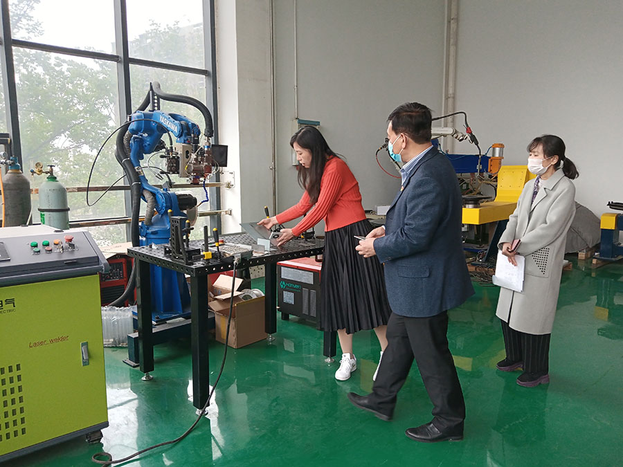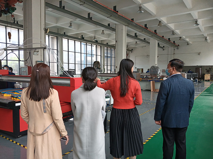 日出江花红胜火,春来江水绿如蓝。2021年4月13日,洛阳市高新区人大领导一行人来我厂考察指导工作,重点参观了我司的钣金自动化设备:涂胶设备、工业平板喷墨打印设备、焊接自动化设备、工业机器人等,对我司的产品给予了肯定。详细了解了数控自动化设备的的应用领域和新产品的研发工作,给予了充分地肯定与认可。