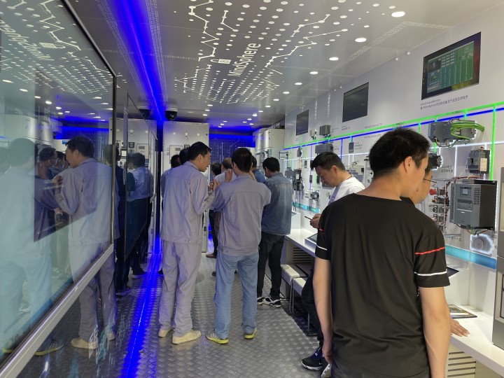 车厢内部展览分为五大板块,分别是智能配电、电机智能控制保护、智能楼宇、行业解决方案、数字化解决方案,充满了科技感。武汉众多企业代表、合作伙伴,络绎不绝地走进车内观展,西门子工作人员现场演示讲解,生动展示了相应技术产品和行业解决方案,助力各级城市的电力公共事业、工业、基础设施和楼宇客户,实现更加高效、可靠、灵活和节能的可持续运营。