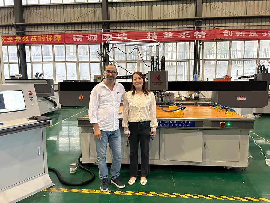 考察数控设备,对工业机器人的兴趣是百分百,对新能源产业也是流连忘返,在我们准备发货的设备前面不走了,一定要拍照留念,让我们的销售人员细心介绍每款产品的功能。